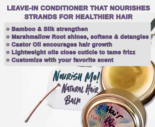 NOURISHME Conditioning Hair Balm | Frizz, Shine, UV/Heat Protection | ProvitaminB5, Silk, Bamboo, Mallow | Custom Scents | Natural Organic